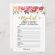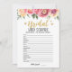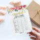 Purchase this game and enjoy high quality Bridal word scramble card for your event! Unscramble the wedding words! Flowers design. ANSWERS: 1-GIFTS, 2-RING, 3-BRIDE, 4-WEDDING, 5-GUESTS, 6-CAKE, 7-GROOM, 8-BRIDESMAID, 9-DRESS, 10-CHAPEL, 11-USHERS, 12-MARRIAGE, 13-HONEYMOON, 14-VOWS, 15-BEST MAN