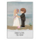 cute wedding couple on the seashore with personalised names and torn edge border for newlyweds congratulations