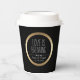 A custom coffee paper cup for the bride and groom, personalise this design with your names and wedding date in place of the sample text shown. Makes a thoughtful idea for a bridal shower, bridal brunch, or engagement party.  These cups hold hot or cold beverages and may be ordered with or without lids.