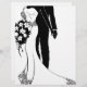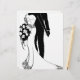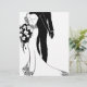 A bride and groom wedding couple in silhouette. With the bride in a white bridal dress gown holding a floral bouquet of flowers and a floral lace pattern around her dress