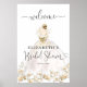 Modern Bride Blonde Hair White Gold Glitter Wedding Gown Dress Elegant Script Calligraphy Heart Bridal Shower Welcome Sign