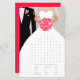 Elegant graphic groom with tux and bride with veil holding a posy of red stylised roses floral bridal shower word search game. Bridal shower party guests are requested to find the wedding-related words in this fun wedding dress-styled word search. An easy game that is good to use as a gift game offering a prize gift to the person finishing first. Unique design and graphic art by Sarah Trett for www.mylittleedenweddings.com
