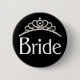 Bride button with a sparkling diamond tiara! Great for the bachelorette party, bridal shower, wedding rehearsal, or other events surrounding the wedding!