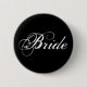 This elegant pinback button features a white text design on a black background: Bride - perfect for brides-to-be!