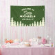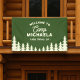 Camp bachelorette welcome banner in green for a girls trip weekend glamping destination sets an instant “Camp Bride” vibe and helps guests find base camp the moment they arrive. Designed for cabins, lake houses, mountain lodges, campsites, and national park rentals, this personalised banner features the bride-to-be's camp name and location so you can brand the getaway for your destination bachelorette party. Use it at the lodge entry, bunkhouse door, campsite pavilion, porch railing, or check-in table to greet the crew, mark meeting points, and anchor your rustic adventure theme for hiking, boat days, winery stops, and cosy campfire nights. The outdoorsy artwork and classic camp typography feel right at home with lake, river, tent, mountains, and campfire vibes, and it coordinates effortlessly with matching invitations, favours, and decor for a cohesive suite. Perfect for a mountain camp bachelorette party or a relaxed lake weekend girls trip, this durable welcome banner doubles as a fun photo backdrop and keepsake for the bride after the celebration. If you’re planning an outdoor destination weekend with glamping comforts and adventure plans, this camp bachelorette welcome banner is the versatile, on-theme sign that pulls it all together.