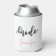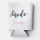 Bride can cooler with black and pink calligraphy lettering. Personalise the name to customise. Modern lettering designed by Joy by Jess.