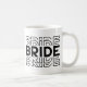 This ceramic coffee mug is shown in a white colour with a wedding bride print.