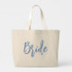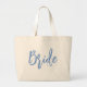 Bride Cute Fun Calligraphy Script Simple Blue Large Tote Bag