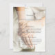 Adorable and editable wedding design Direction with a beautiful bride in white lace and diamond ring on her hand in the background.