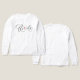 The bride wore white with elegant unique custom handlettering. This shirt design makes the rehearsal dinner just that more fun and special. The perfect thing to wear to set the mood for the following day and yet you don't have to think too hard about what to wear… after all there is sooooo much to think of isn't there? Or perhaps for those of us casual gals, great to wear under your leather jacket at the courthouse ceremony, or proudly announce the new you on your honeymoon - tell everyone your happy news. We have created a 'Groom' shirt as well, just look in our store and there are a few variations of these designs. Hopefully one is perfect for you, or the perfect gift from to you to the bride.
