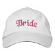 Bride Embroidered Baseball Cap by Called. Fun for a Bachelorette Party! Shown is the white cap with pink embroidered lettering. :: Fully customisable. Other hat colours and styles available.