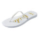 Flip flops for the bride in white and gold. You may customise for your entire wedding party and guests for your wedding, shower or bachelorette weekend.