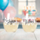 Elevate your wedding toast with our set of personalised wine glasses. Featuring modern sans serif font, one glass proudly displays 'BRIDES' while the other boasts 'GROOM.' Each glass is uniquely adorned with the respective name, overlaying the word bride or groom in stylish script signature style. This thoughtful and chic set not only adds a personalised touch to your celebration but also makes for a memorable keepsake, commemorating the union of two hearts. Cheers to a lifetime of love and shared moments with these elegant personalised wine glasses.