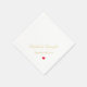 Create your own custom, personalised, elegant faux gold typography / calligraphy / script / font on white background, bride groom / couple names, wedding / anniversary date, red heart, your choice of white or ecru coloured, coined or standard style, food contact safe, party celebration cocktail luncheon dinner paper napkins that look good tucked in the collar or draped over your lap. Simply type in the bride and groom's or wife and husband's names, and the wedding date, to customise. Elegant, classy paper napkins, perfect for wedding reception, anniversary celebrations, engagement party, and more.