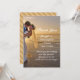 Wedding Couple, Bride and Groom on Sunset Beach Thank You Flat Card. You can change this for your photo or keep the beautiful wedding photo in this template. The back of the card has a tan striped diagonal pattern which matches some of the colours of the sand.