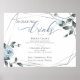 Dusty Blue Floral to match your wedding theme, Signature cocktail drinks for the Bride and Groom with addition space for alternative choices. Watercolor roses, leaves and berries in modern chic dusty blue surround a geometric terrarium style silver frame with sage greenery. Customise text, font style, colour and size. Original artwork created for the BarefootBride™ by © WhimsicalArtwork™ - This is part of a complete Wedding Stationery Suite with matching wedding, baby shower and other event stationery.