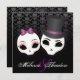 This custom square invitation is dark yet whimsical and easy to customise with your own wedding, engagement party or other event information -- be sure to see our other Bride & Groom Skullie products, including black matching envelopes... {{Looking for specific design, colours or help with layout? Feel free to contact me any time at mel@creativemel.com ~ I'd be happy to help!}}