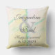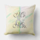 Romantic soft pink, green, yellow, blue tropical watercolor wash background reversible Wedding Throw Pillow with the bride and grooms names and wedding date. Front of Pillow has the wording Mr. and Mrs. in grey text. Personalise with your wedding details. Back of Pillow has the wording, Mr. & Mrs. Lovely wedding gift for the newlyweds! Original Artwork by TamiraZDesigns.
