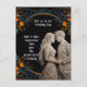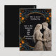 Bride & Groom Wedding Personalised Invitation on black with gold with a flower boarder.