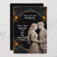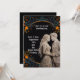 Bride & Groom Wedding Personalized Invitation on black with gold with a flower boarder.