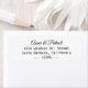 Your address personalised in a easy way... in a white, clear and clean label with three lines of text aligned by centre, and bride and groom names written in a script font style