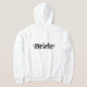 Bride zip hoodie is shown in white with a fancy text print in the colour black on the front and back side.