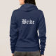 This women's Bella soft zip hoodie for the bride to relax in is shown in navy blue and has white colour Bride text on the front and back.