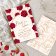 Bride in bloom theme bridal shower invitation features roses and peonies in red,pink and maroon colour with gold floral and botanical pattern.A perfect gold and off white colour background with red floral arrangement.