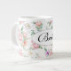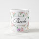 Bride jumbo mug is shown in a pretty rose floral print, Bride text.