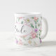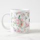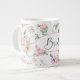 Bride jumbo mug is shown in a pretty rose floral print, Bride text.