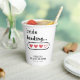 Simple, minimalist bride loading bridal shower paper cups with red hearts. Personalise it with your event details.