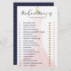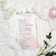 Fun & stylish bride or groom bridal shower game card. Fun game to play at your bridal shower party. Elegant blush pink shimming dress with gold vintage hanger displayed in the background. The game card can be customised with your list of questions. Original artwork and design By Moodthology Papery.