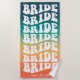 Throwing a retro themed bachelorette party or bridal shower by the pool or on the beach? This a groovy and stylish retro bride typography design on retro rainbow gradient background. Make it extra special by adding your name, when you select "personalise this template". For questions or requests regarding this design, please contact us via the chat; we'd be happy to help!