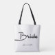 The "Bride's Essentials - Personalised Script Tote Bag" is more than just a functional item; it's a keepsake that you'll cherish long after your special day. It's a reminder of the joy and love that led to one of the most important moments of your life.