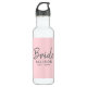 Stay hydrated in style with this Bride Script Blush Pink Established Personalised stainless steel water bottle. It is designed with "bride" in modern grey script lettering. Personalised with bride's name and established year of wedding. Customisable blush pink background. Great gift idea for bridal shower, bachelorette party or honeymoon.