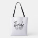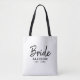 You can not go without this Bride Script White Black Established Date Monogram Tote Bag.  It is designed on both sides with "bride" in modern black script lettering.  Personalised with bride's name and established year of wedding.