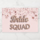 A label for a bridal shower or bachelorette party. A light rose gold, pink background with elegant faux rose gold sparkling stars. With the text: Bride Squad written with a balloon style font, rose gold coloured.