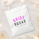 Cute, simple, stylish "Bride Squad" quote art favour bag with modern, minimalist typography in black and hot neon pink in a cool trendy style. The slogan, name and role can easily be personalised with the names of your bridal party, for example, bride, bridesmaids, flower girls, Mother of the Bride, Glam Squad & so much more! The perfect matching, coordinating accessories for team bride for a bridal shower, bachelorette party, or morning of the wedding with a super cute one or a kind personal touch!