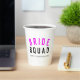 Cute, simple, stylish "Bride Squad" quote art paper cups with modern, minimalist typography in black and hot neon pink in a cool trendy style. The slogan, name and role can easily be personalised with the names of your bridal party, for example, bride, bridesmaids, flower girls, Mother of the Bride, Glam Squad & so much more! The perfect matching, coordinating accessories for team bride for a bridal shower, bachelorette party, or morning of the wedding with a super cute one or a kind personal touch!