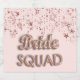 A label for a bridal shower or bachelorette party. A light rose gold, pink background with elegant faux rose gold sparkling stars. With the text: Bride Squad written with a balloon style font, rose gold coloured.