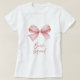 This design features a soft and elegant aesthetic. At the top, there's a delicate, watercolor-style bow in a muted blush pink. Below the bow, the phrase "Bride Squad" is written in a graceful, flowing script font, coloured in a slightly darker shade of pink that complements the bow. The overall look is clean, charming, and stylish, making it a great accessory for a bridal party. It would be perfect for the bridesmaids'.