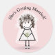 Bride Stick Girl In Sneakers On Pink Classic Round Sticker