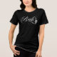 Bride t-shirt for a goth wedding with bride printed across the chest in a swirly calligraphy script with a skull in one of the loops. On the back, Til death to us part with your names and wedding date. Personalised til death do us part t-shirt for the bride, printed on both front and back and customised with the bride and groom's names and wedding date. Get the matching tee for the groom too!