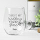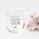 Modern and casual chic black calligraphy script "This is My Wedding Planning Glass" women's bridal wedding planning stemless wine glass features custom text that can be personalised with the bride's first name. Makes a sweet gift the future Mrs!