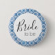Bride to Be button with blue tile look border- Customise your pins for your whole bridal party