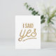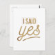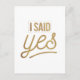 Bride To Be Gift - I Said Yes Gold Foil (faux) Postcard