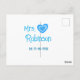 Bride to be Mrs add name date blue heart watercolo Postcard