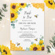 These bridal shower invitations feature a watercolor floral design with sunflowers, eucalyptus leaves, honey bees and honeycomb. Matching products also available.
