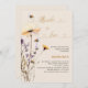 A beige coloured background. Decorated with bees and painted wildflowers in violet and pink. Personalise and add a name and party details. Gender neutral.