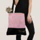 This lovely fashion forward tote bag shows the word "Bride" in a Golden-Caramel text colour over Black with the upper tote bag in Pink with petite Golden stars print all over. Has plenty of room for personalised text. Graphics and text are on both sides of this tote bag. Black handle. Customise further or buy as shown.
